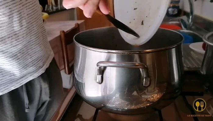 - Aggiungere un litro di acqua calda (o brodo) e portare ad ebollizione .